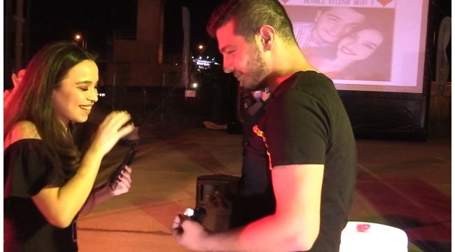 Evlilik teklifi için uygun bir zaman aradığını ifade eden İsmail Yağız; “3 yıllık bir birlikteliğimiz var. Ben evlilik teklifi için fırsat kolluyordum. Kocaeli Büyükşehir Belediye Başkanı Tahir Büyükakın’ın sosyal medya hesaplarında arabada sinema etkinliğini gördüm. Sosyal medya üzerinden Tahir Başkan ile iletişime geçtim. Sağ olsun beni kırmadı, organizasyonu düzenleyen ekip ile beni görüştürdü. Fotoğraflarımızı verdim. Etkinliğin sonunda fotoğrafımız beyaz perdeye yansıtıldı. Bende araçtan inerek evlilik teklifimi yaptım. Bize bu fırsatı veren başkanımız Tahir Büyükakın’a sonsuz şükranlarımı sunuyorum” dedi.