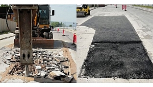 Fen İşleri Daire Başkanlığı ekipleri, Gölcük Asar Dere Kavşağı D-100 katılım kollarında bozulan zeminleri söküyor. Söküm işlemi sonrasında yama asfaltlaması yapılıyor. Yapılan onarım çalışması ile yolun konforu arttırılırken vatandaşlarında memnuniyeti kazanılıyor.