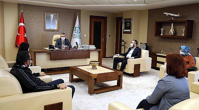 Marmara Belediyeler Birliği ve Kocaeli Büyükşehir Belediye Başkanı Doç. Dr. Tahir Büyükakın, Kocaeli Terziler Odası Başkanı Şaziye Kahrımanlı ve yönetim kurulu üyelerini makamında konuk etti. Kocaeli’nde sağlık çalışanlarına gönüllü olarak maske üreten Terzi Odası üyeleri, artık Büyükşehir Belediyesi’nin ihtiyaçları için de dikim gerçekleştirecek. Bu süreçte en çok etkilenen sektörler arasında yer alan terzilere destek olmak için maske dikim hizmeti alacaklarını dile getiren Başkan Büyükakın, “Terziler Odamıza maske üretimi için kumaş vereceğiz. Terzilerimiz günlük on bin maske üretimi gerçekleştirecekler. Bu sayede Büyükşehir Belediyesi olarak terzi esnafımıza da destek olmuş olacağız” açıklamasını yaptı.