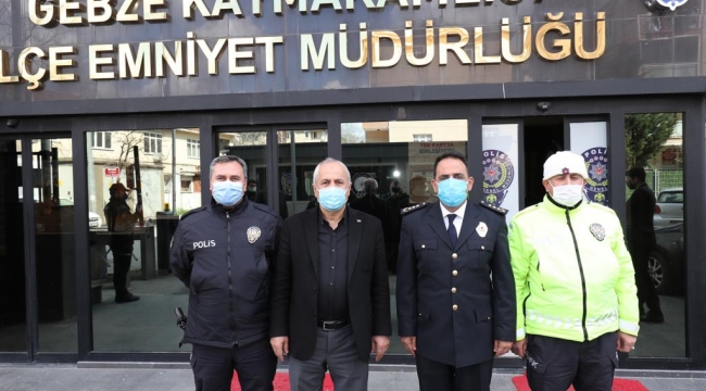 Polis memurlarına görevlerinde başarılar ve kolaylıklar dileyen Gebze Belediye Başkanı Zinnur Büyükgöz, Gebze İlçe Emniyet Müdürlüğü’nü de ziyaret etti. İlçe Emniyet Müdürü Adil Uğur Bilgili’yi makamında ziyaret eden Gebze Belediye Başkanı Zinnur Büyükgöz yaptığı açıklamada, “Güzel yurdumuzun dört bir yanında her zaman büyük bir özveriyle görev yapan, milletimizin huzuru ve devletimizin bekası için gayretlerini ortaya koyan Polis Teşkilatımızın 176. Yıldönümünü kutluyor, tüm polislerimizin sağlık ve sıhhat içerisinde başarılı görevlere imza atmasını cenabı Allah’tan niyaz ederim” ifadelerini kullandı.