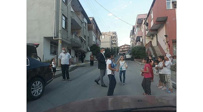 Aracından inerek çocukların yanına giden Başkan Şayir, pandemi sürecinde yaşanan salgın nedeniyle maskesiz sokağa çıkmanın sağlıkları açısından risk taşıdığını belirterek maskesiz sokağa çıkmamalarını istedi.