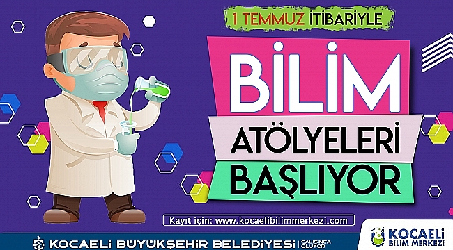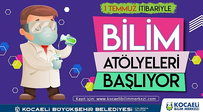 Kocaeli Bilim Merkezi’nde 1 Temmuz Çarşamba günü itibariyle atölye faaliyetleri başlıyor. Bilim Merkezi yaz tatili boyunca birçok atölye ve benzeri eğlenceli etkinliklere ev sahipliği yapacak. Atölye programlarına 4-13 yaş aralığındaki çocuklar katılabilecek. Atölyeler koronavirüs önlemleri kapsamında yağmursuz günlerde Bilim Merkezi’nin bahçesinde gerçekleştirilecek.
