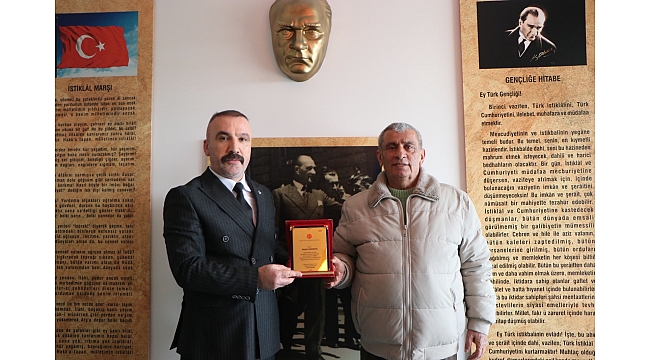 Plaket takdimi sırasında konuşan İlçe Başkanı Yusuf Turhan, “Tecrübelerinden istifade ettiğimiz, kendisinden feyz aldığımız değerli büyüğümüz Haydar Karakaya’nın, Türk bayrağı dağıtımı başta olmak üzere ülkemizin aydınlık geleceği için verdiği emek ve her fırsatta dile getirdiği birlik-beraberlik çağrıları bizler için son derece kıymetlidir. Ülkemiz, milletimiz ve bölgemiz adına ortaya koyduğu özverili çalışmalar için kendisine teşekkür ediyoruz,” ifadelerini kullandı.