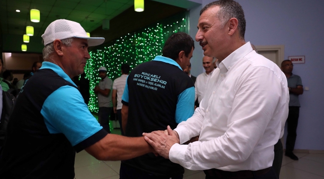 Marmara Belediyeler Birliği ve Kocaeli Büyükşehir Belediye Başkanı Doç. Dr. Tahir Büyükakın, Gebze bölgesindeki vatandaşlara hizmet veren Büyükşehir Belediye çalışanlarının Kurban Bayramı’nı tebrik etti. Çalışanlara aileleriyle mutlu bir bayram geçirmelerini dileyen Başkan Büyükakın, “Hep birlikte yoğun bir tempoda çalışıyoruz. Gece gündüz çalışmaya devam edeceğiz. Büyük bir vebal aldık. Halkımızın emanetini birlikte koruyacak ve sahip çıkacağız. Siz kıymetli personellerimizin tavsiyelerini her fırsatta almak isterim. Çalışanlarımız, Büyükşehir Belediyemizin ve bizlerin yüzüdür” dedi.