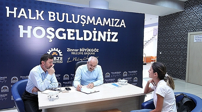 Gebze’de vatandaş derdini, talebini anlatıyor, Gebze Belediye Başkanı Zinnur Büyükgöz sorunun çözümü için gerekeni anında yapıyor! Gebze Belediye Başkanı Zinnur Büyükgöz Halk Buluşması kapsamında Gebzeli hemşerileri ile bir araya gelmeye devam ediyor. Her hafta Çarşamba gününü sadece Gebzeli hemşerilerine ayıran Belediye Başkanı Zinnur Büyükgöz, hizmet binasında vatandaşları ağırlıyor. Başkan Büyükgöz’e Halk buluşması programında Başkan Yardımcısı Sedat Çelik, belediye meclis üyeleri ve ilgili müdürler hazır bulunuyor. Ulaşılır belediye başkanı olacağını her fırsatta dile getiren ve bu doğrultuda düzenlediği Halk Günleri ve Mahalle Meclisleriyle Gebzeli hemşerileri ile bir araya gelen Başkan Büyükgöz, makamın asıl sahibinin millet olduğunu her fırsatta dile getiriyor.