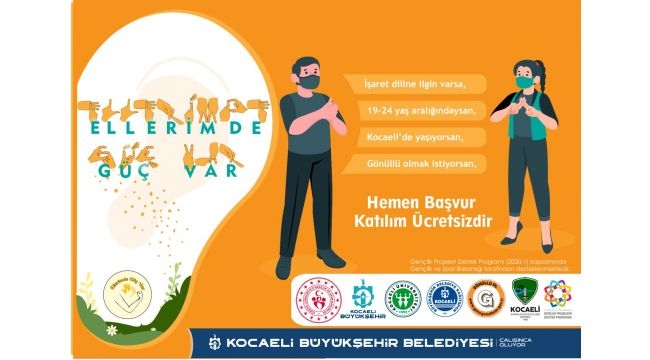 Kocaeli Büyükşehir Belediyesi, engellilere yönelik projelerine bir yenisini daha ekliyor. 120 gönüllü ile 20 işitme engelli bireyin bir araya geleceği “Ellerimde Güç Var” projesi ile engellilerin desteklenmesi ve toplumsal farkındalık oluşturulması hedefleniyor.