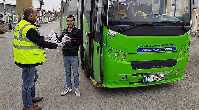 Kocaeli Büyükşehir Belediyesi, korona virüs tedbirleri kapsamında toplu taşıma araçlarında kullanılmak üzere kooperatiflere dezenfeksiyon ve maske dağıttı.