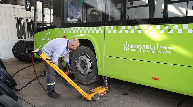 1 Aralık 2019 tarihinden itibaren başlayan zorunlu kış lastiği uygulaması kapsamında Kocaeli Büyükşehir Belediyesi iştiraklerinden UlaşımPark, otobüslerin üzerinde takılı yaz lastiklerini Avrupa Birliği’nin kabul ettiği, üzerinde ‘kar kristali’ sembolü bulunan kış lastikleriyle değiştirmeye başladı. Plaj yolu garajında bulunan lastik bakım onarım atölyesinde araçların yaz lastikleri teker teker değiştirilerek araçlar kış şartlarına hazırlandı.