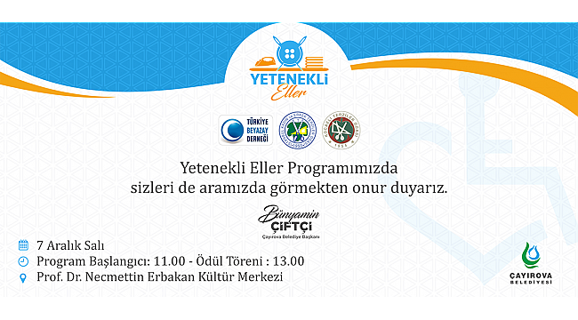 Engelli vatandaşların sosyal hayatın içerisinde daha fazla yer alması için etkinliklerini hız kesmeden sürdüren Çayırova Belediyesi, yakın zamanda gerçekleştirilen “Lezzet Engel Tanımaz” yemek yarışmasının ardından bu kez de “Yetenekli Eller’’ yarışması düzenliyor. Belediye Başkanı Bünyamin Çiftçi’nin de katılım göstereceği yarışma Prof. Dr. Necmettin Erbakan Kültür Merkezi’nde yapılacak. 6 kişilik jüri heyeti tarafından sonuçları açıklanacak yarışmada dereceye giren takımlara ödülleri Belediye Başkanı Bünyamin Çiftçi tarafından verilecek.