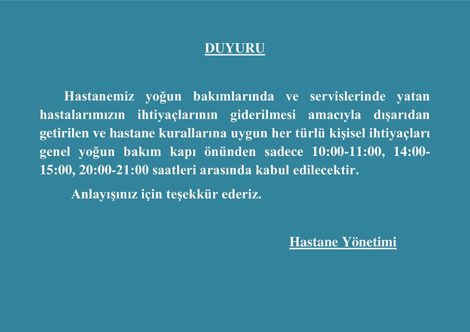 Hastanede yatan hastaların ihtiyaçlarını karşılamak için dışarıdan getirilen malzemeler hastane yönetiminin belirlediği saatlerinde dışında kabul edilmeyecek. İşte yapılan açıklama;