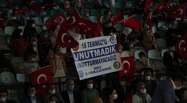Darıca, 15 Temmuz Hain Darbe girişiminin yıl dönümünde vatan nöbeti için bir kez daha meydanlarda buluştu. Ancak Metro çalışmaları nedeniyle Darıcalıların bu yıl ki buluşma adresi Darıca Sahili oldu. Demokrasi ve Milli Birlik Günü’nde Darıcalılar bir kez daha tıpkı 4 yıl önce olduğu gibi yine tek yürek oldu. Sahilde yapılan etkinliklere çok sayıda vatandaş katılarak nöbette olduğunu bir kez daha gösterdi. Darıca Kaymakamı Ömer Karaman, Belediye Başkanı Muzaffer Bıyık, siyasi parti temsilcilerinin de katıldığı etkinliklerde günün anlam ve önemini belirten konuşmalar, slaytlar gerçekleştirildi. Programda Başkan Muzaffer Bıyık, “Canlarını vatan için tereddüt etmeden feda etti kahraman şehitlerimiz. 251 vatan evladı şehadet şerbetini içti, 2 bin 196 kardeşimiz gazi oldu. Bugün Darıca’lı vatandaşlarımızla bir araya gelerek #15Temmuz Etkinlikleri kapsamında onları konuştuk, dualarla andık.15 Temmuz Destanı’nın kahramanlarına rahmet ve minnetle..Unutmadık, asla ve asla unutmayacağız...