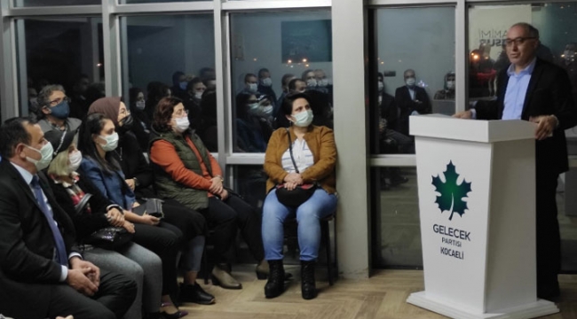 Genel Başkan Yardımcısı Doğan Demir’in konuşması sırasında Gelecek Partisi Genel Başkanı Prof. Dr. Ahmet Davutoğlu görüntülü olarak bağlandı ve partililere hitap etti. Davutoğlu, “Dün Düzce Deprem Felaketi’nin yıldönümüydü. Oradaki programlara katıldık. Birçoğunuz oradaydı. Hepinize ayrı ayrı teşekkür ediyorum. Kocaeli oldukça dinamik bir teşkilatımız. Teşkilatlanma ve kongre süreçlerini başarıyla atlattınız. Çalışmalarınızı yakından takip ediyorum. Sizlerden beklentimiz yüksek. Sizlere borçlandım. İl binamızın açılışına gelecektim araya pandemi nedeniyle yasaklar girdi. Sonrasında il kongresine gelecektim bu seferde sağlık sorunumuz nedeniyle doktorlar izin vermediği için gelemedik. Ama ilk fırsatta geleceğim. Bu coşku ve heyecanınızın artarak devam etmesini diliyorum” diye konuştu. Genel başkanın toplantıya bağlanması ve övgü dolu sözleri partiliklerde büyük moral oldu.