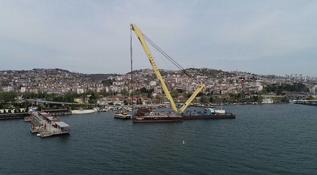 İzmit'te , 17 Ağustos 1999 depreminde kara bağlantısı yıkılan ve o günden bu yana atıl durumda olan iskelenin, 4 bin 586 groston ağırlığındaki ve 100 metre yüksekliğindeki dev deniz vinci ile yapılan yıkım işlemi tamamlanıyor.