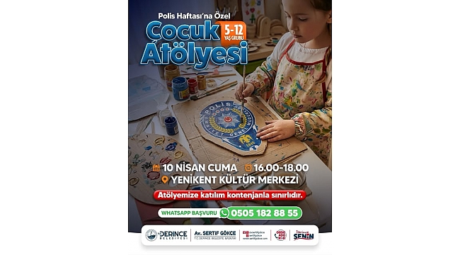 5-12 yaş arası çocukların katılımına açık olan atölye, 10 Nisan Cuma günü 16:00-18:00 saatleri arasında Yenikent Kültür Merkezi’nde gerçekleşecek. Sınırlı kontenjanı bulunan atölye için başvurular WhatsApp üzerinden alınıyor.