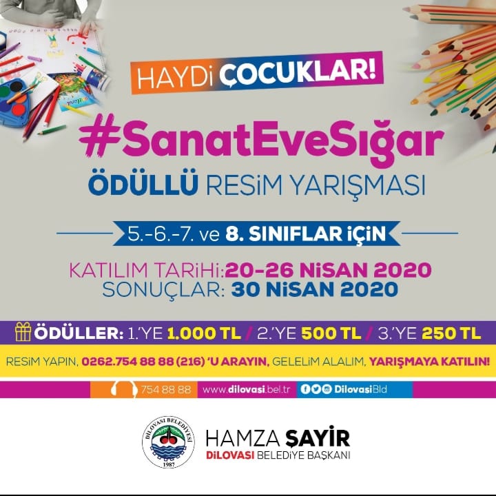 Tüm dünyayı etkisi altına alan korona virüs (Covid-19) salgınını bertaraf edebilmek için "Evde Kal" çağrılarına uyan Dilovalı öğrencilere sanatsal aktivite imkanı sunmayı hedefleyen Dilovası Belediyesi, "Sanat Eve Sığar" sloganıyla " resim yarışması başlattı.