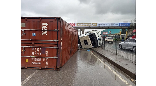 Edinilen bilgilere göre;kaza bugün E-5 İstanbul istikameti Dilovası girişinde meydana geldi.Konteyner yüklü olan bir TIR sürücüsünün kontrolünü kaybetmesi sonucunda devrildi.Kazada sürücü yaralanırken,çevredekilerin haber vermesiyle olay yerine itfaiye,polis ve sağlık ekipleri çağırıldı.Kısa sürede ola yerine gelen ekipler araçta sıkışan sürücüyü kurtardı.Ambulansla hastaneye kaldırılan sürücünün sağlık durumunun iyi olduğu öğrenilirken,polis kazayla ilgili soruşturma başlattı.