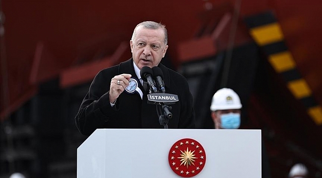 Erdoğan, "Korkut alçak irtifa hava savunma sisteminin deniz versiyonu olan Gökdeniz'i ilk kez İstanbul Fırkateyni'yle birlikte envantere alacağız. Anadolu Gemimizden sonra yerli ve milli olarak planlayacağımız uçak gemimiz bizi bu alanda en üst lige taşıyacaktır" dedi.
