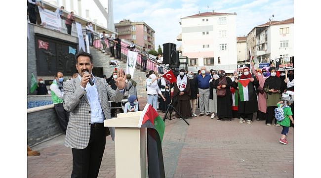 AK Parti Kocaeli Milletvekili Cemil Yaman, Derince Belediye Başkanı Zeki Aygün, AK Parti Derince İlçe Başkanı Koray Merdan, Derince İlçe Müftüsü Mecit Amil, belediye başkan yardımcıları, meclis üyeleri, muhtarlar, siyasi parti temsilcileri, STK başkan ve yöneticileri ile vatandaşların katıldığı basın açıklaması Kent Meydanı’nda gerçekleşti. Derince Merkez Camii İmam Hatibi İbrahim Demiröz'ün Kur'an-ı Kerim tilaveti ile başlayan programda açılış konuşmasını İHH Derince Temsilcisi Furkan Güngör yaptı. Derince’deki STK’larla ortak bir program tertip ettiklerini belirten Güngör, “Son günlerde bir terör devleti olan katil İsrail’in Kudüs ve Gazze’de yapmış olduğu saldırılara karşı tepkimizi ortaya koymak ve Filistin’deki kardeşlerimizin yanlarında olduğumuzu göstermek için bu basın açıklamasını düzenliyoruz. İşgalci bir çete olan İsrail’in bölgeye yerleşmesi tam bir insanlık suçudur” dedi.