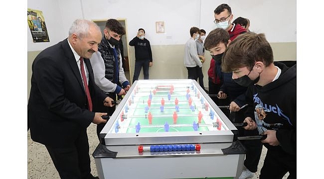 Gençlerin ve öğrencilerin her zaman yanında olan Gebze Belediye Başkanı Zinnur Büyükgöz, eğitime de desteğini artırarak sürdürüyor. Başkan Büyükgöz’ün talimatı doğrultusunda başlatılan ve ilçedeki okullarda öğretim gören öğrencilere yönelik kırtasiye malzemesi desteği devam ediyor. Bu çalışmalar kapsamında Süleyman Demirel Anadolu Lisesi’ni ziyaret eden Gebze Belediye Başkanı Zinnur Büyükgöz, öğrencilere kırtasiye malzemesi ve çanta hediye etti. Okulda eğitimlerini sürdüren öğrencilerle bir süre sohbet eden Başkan Büyükgöz, gençlerle langırt ve masa tenisi oynadı. Gençlerle dersleri ve bundan sonraki eğitim hayatlarındaki amaçladıkları hedefleri konusunda sohbet de eden Gebze Belediye Başkanı Zinnur Büyükgöz, derslerinde başarılar diledi.