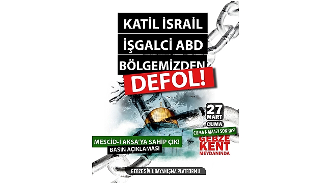 Gebze Sivil Dayanışma Platformu, Mescid-i Aksa’ya destek amacıyla basın açıklaması düzenleme kararı aldı. Platform tarafından yapılan duyuruya göre etkinlik, bugün cuma namazının ardından Gebze Kent Meydanı’nda gerçekleştirilecek.