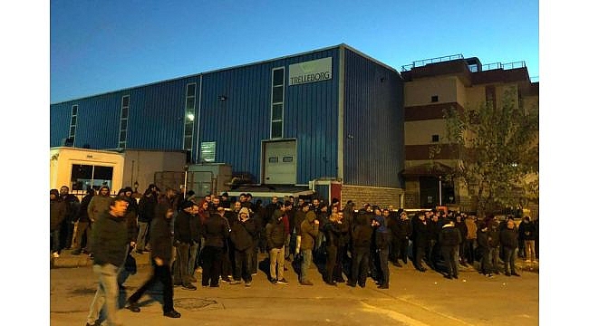 Gebze Organize Sanayi Bölgesi’nde kurulu bulunan Trelleborg fabrikasında örgütlü Petrol-İş Sendikası ile fabrika yönetimi arasındaki toplu sözleşme görüşmeleri anlaşmazlıkla sonuçlandı. Anlaşmazlık üzerine Petrol-İş üyesi işçiler, taleplerinin karşılanması için üretimi durdurarak greve çıktı. Greve çıkan Trelleborg fabrikası işçileri fabrika önünde bekliyor.