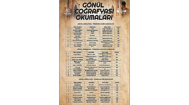Geçmişte yaşanan olayları fark ve idrak etme, farklı coğrafyaların tanınması ve tarihte yaşanan olaylar hakkında bilinçlenmesi amacıyla her yıl düzenlenen Gönül Coğrafyası Okumaları, bu yıl Türkistan coğrafyasından dünya medeniyetlerine öncülük etmiş Semerkant ve Buhara bölgelerini konu aldı. Yarışmayla beraber liseli gençler ödül kazanmanın yanı sıra ‘Gönül Coğrafyası Okumaları’nı pekiştirdi ve edebi yönlerini, düşüncelerini kâğıda dökme becerilerini keşfetmiş oldu.