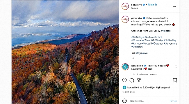 TC Kültür ve Turizm Bakanlığı’nın ‘’Go Turkiye’’ seyahat rehberi, bir milyona yakın takipçisi bulunan instagram sayfasında Kocaeli’den Sisli Vadi’nin fotoğrafını paylaştı. Bakanlığın ‘’goturkiye’’ hesabından paylaşılan Sisli Vadi fotosu, takipçilerden yoğun beğeni aldı. Paylaşımda ‘’Hello November! Hi, crimson orange trees and mistful mornings! We’ve missed you dearly.’’, ‘(Merhaba Kasım! Merhaba, kıpkırmızı portakal ağaçları ve sisli sabahlar! Seni çok özledik.) ifadesi kullanıldı. Kocaeli Büyükşehir Belediyesi de bakanlığın paylaşımına ‘’I Love Kocaeli-Sevdamız Kocaeli’’ yorumunu yaptı. Fotoğrafa yerli ve yabancı takipçilerden de beğeni yorumları geldi. Kartepe Maşukiye’de yer alan Sisli Vadi, doğaseverlerden yaz-kış yoğun ilgi görüyor.