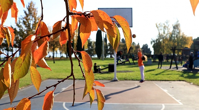 Güzel havayı fırsat bilerek çocuklarıyla İzmit Körfezi'nin kıyısında yer alan parka giden Kocaelililer, sararan yapraklar arasında dolaştı.