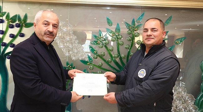 Gebze Belediyesi GEAK (arama kurtarma) ekibi bünyesinde yer alan personellere AFAD tarafından hazırlanan ve İç İşleri Bakanı Süleyman Soylu’nun imzaladığı teşekkür belgelerini, Gebze Belediye Başkanı Zinnur Büyükgöz takdim etti.