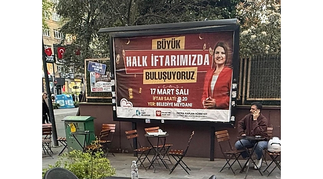 İzmit’in en işlek noktalarından biri olan Okul Geçidi Sokak’ta, Ulugazi İlkokulu yanında bulunan billboardda İzmit Belediye Başkanı Fatma Kaplan Hürriyet’in 17 Mart’ta düzenlenen iftar programına ait “Büyük halk iftarımızda buluşuyoruz” yazılı afişin hâlâ asılı olduğu görüldü.