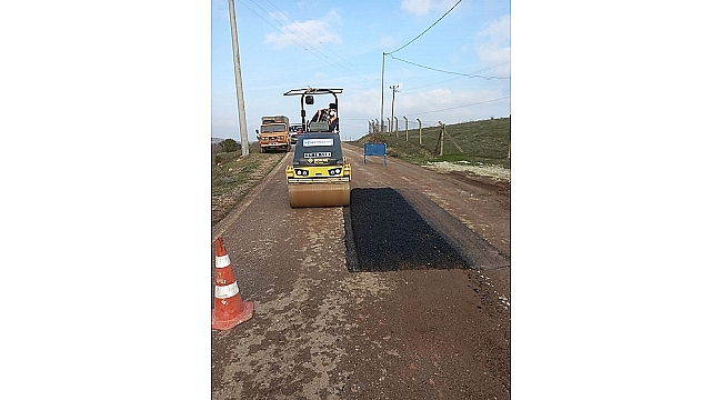 8 KİLOMETRELİK YOLA 800 TON ASFALT YAMA