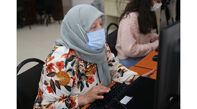 Gölcük kurs merkezinde giyim üretimi branşında eğitim alan kursiyerler ise ilk defa bilgisayar başına oturarak klavyede bir şeyler yazmanın sevincini yaşadı.