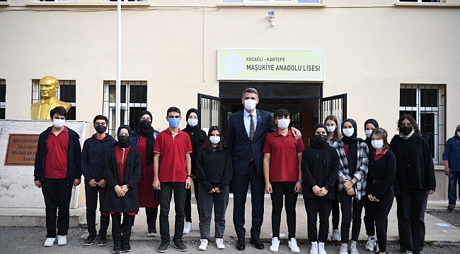 Kartepe Belediye Başkanı Av.M.Mustafa Kocaman, eğitimde kalite ve başarı seviyesini en üst düzeye çıkarabilmek amacıyla İlçe Milli Eğitim Müdürlüğü ile yürüttüğü "Eğitim Her Şeyimiz" projesi kapsamında Maşukiye Anadolu Lisesi öğrencileriyle bir araya geldi.