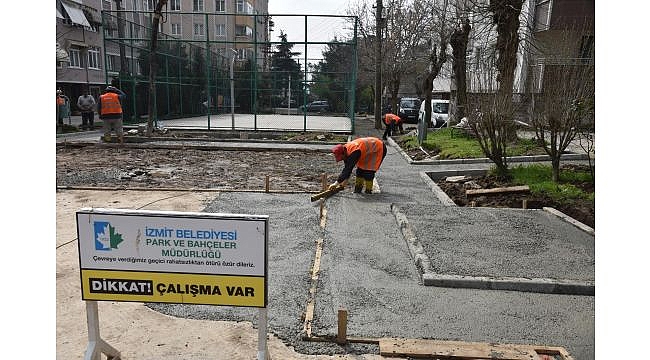 İzmit Belediyesi Park ve Bahçeler Müdürlüğü ekipleri Yeni Mahalle Gönül Sokakta bulunan Teknik Çocuk Parkı’nda yenileme çalışması yapıyor. Bin 5 metrekare park alanında yapılan tadilat ve yenileme çalışmalarında sosyal alanları genişleten İzmit Belediyesi, yeni yürüyüş yolları ve oyun alanları da ekliyor. Parkın tadilat ve bakımı çalışmalarında 174 metreküp bordür döşenip, 43 metreküp baskı beton kullanılarak yürüyüş yolları, renkli oyun alanları hazırlanıyor. Kauçuk zemin yapılan Teknik Çocuk Parkı’nda zemin çalışması tamamlandıktan sonra üstüne de yeni oyun grubu monte edilecek.