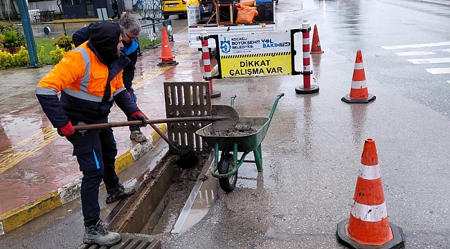 Yağış sonrası oluşabilecek su birikintileri ve taşkın riskine karşı önlem alan ekipler, mazgallarda biriken çamur, yaprak ve atıkları temizleyerek hatların açık kalmasını sağlıyor.