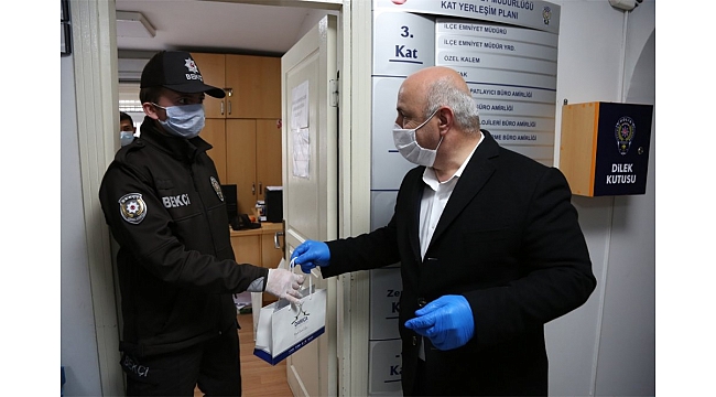 Darıca Belediye Başkanı Muzaffer Bıyık, gece gündüz vatandaşların huzuru için çalışan Darıca İlçe Emniyet Müdürlüğü personeline ve Darıcalı mahalle muhtarlarına maske dağıtımı gerçekleştirdi.