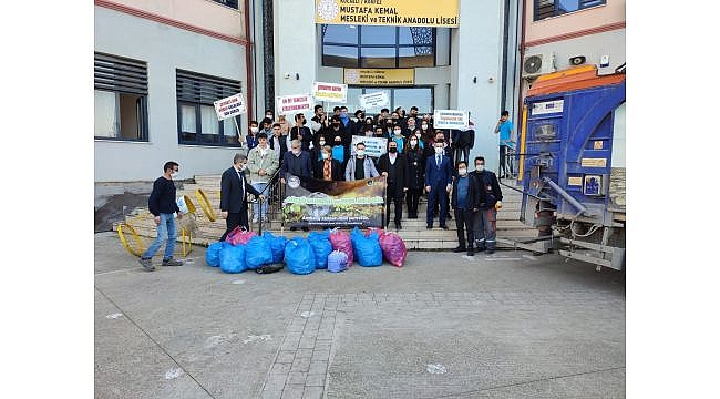İlçe genelindeki kamu kurumlarına, okullara ve ortak kullanım alanlarına geri dönüşüm için konteynerler koyan Körfez Belediyesi, ayrıca eğitimlerle de çocuklara çevre bilincini aşılamayı sürdürüyor. Okullarla birlikte yürütülen iş birliği kapsamında Mustafa Kemal Mesleki ve Teknik Anadolu Lisesi öğrencileri de önemli bir adım attı. Plastik atıklara dikkat çekmek adına yürütülen proje kapsamında Körfez Belediyesi tarafından okul içerisine atık konteynerleri koyuldu. Öğrencilerin de ilgi gösterdiği proje kapsamında Temizlik İşleri Müdürlüğü Sıfır Atık Yönetim Şefliği, önceki gün atıkları almak için okula gitti. Öğrenciler tarafından toplanan yaklaşık 300 kilo plastik atık alındı ve geri dönüşüme gönderildi. Yetkililer, okul yöneticilerine ve öğrencilere teşekkür etti.