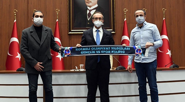 Vali Yardımcısı Ali Ada, Gençlik ve Spor İl Müdürü İbrahim Aktürk ve İl Müdür Yardımcısı Ziya Ülhak Sarıgül’ün de hazır bulunduğu ziyarette Başkan Havuç; alınan başarılar, tesis planları ve yatırımları, 2021 yılı yapılacak faaliyetler, Başiskele’deki Olimpik merkez başta olmak üzere birçok konu ile ilgili bilgilendirmelerde bulundu. Program sonunda ise Kocaeli Valisi Seddar Yavuz’u Olimpik merkeze davet eden Başkan Havuç, kulüp özel atkısını takdim etti. Ayrıca spora ve sporcuya canı gönülden destek veren Vali Yavuz’a ve ekibine teşekkür etti.