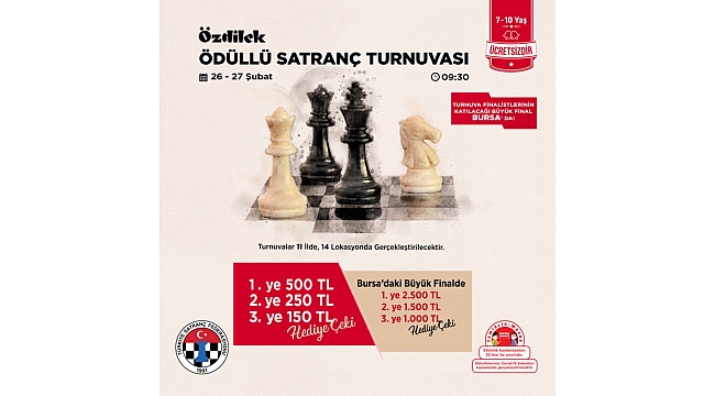 ÖzdilekPark Bursa Nilüfer’de gerçekleşecek büyük finali öncesinde her şubenin kendi birincisi 500 TL, ikincisi 250 TL, üçüncüsü ise 150 TL değerinde hediye çeki kazanacak. Her yarışmacıya turnuva anısı olarak madalya ve dereceye girenlere kupa takdim edilecek. İki gün boyunca gerçekleşecek final turuna katılmaya hak kazanan sporcu ve bir velisi de Özdilek tarafından Bursa’da ağırlanacak.