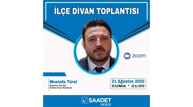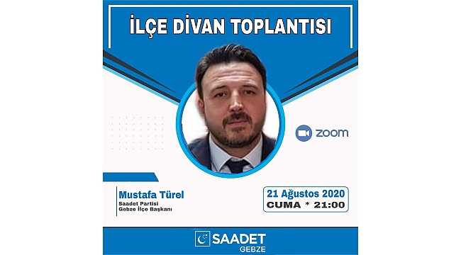 İlçe divan toplantısını gerçekleştirecek olan Saadet Partisi Gebze Başkan Mustafa Türel başkanlığında bir araya gelecek. Partililerin görüş alışverişinde bulunacakları ve çalışmaları konuşacakları programda önemli konuların masaya yatırılması beklenirken Saadet Partisi Gebze ilçe teşkilatının çalışmaları, yaptıkları ve yapacakları da bu programda konuşulmuş olacak.