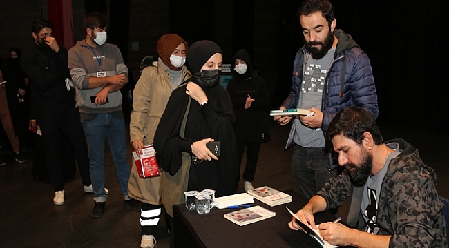 Necmettin Erbakan Kültür Merkezi Salonunda hayranları ile söyleşi gerçekleştiren Serdar Tuncer, kitaplarını imzalayarak hatıra fotoğrafı çektirdi.