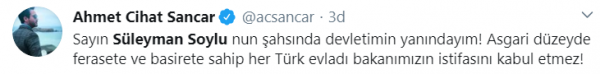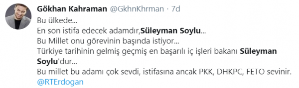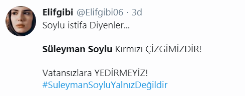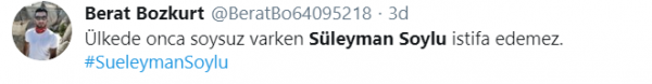 İçişleri Bakanı Süleyman Soylu, görevinden istifa ettiğini açıkladı. Açıklamanın hemen ardından Türkiye halkı istifaya tepki gösterdi. Twitter'dan Süleyman Soylu'ya yoğun destek yağdı.