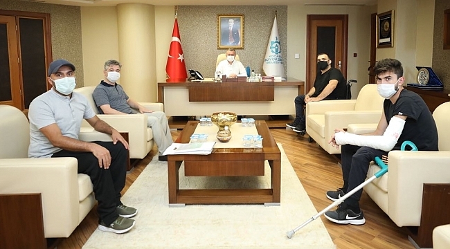 Marmara Belediyeler Birliği ve Kocaeli Büyükşehir Belediye Başkanı Doç. Dr. Tahir Büyükakın, Başiskele Engelliler Spor Kulübü Başkanı İsa Yıldız ve yönetimini makamında konuk etti. Kendisine 41 forma numaralı basketbol forması hediye eden misafirleriyle yakından ilgilenen Başkan Büyükakın, sporun kentin tüm katmanlarına ulaşması için yoğun bir çaba sarf ettiklerini dile getirdi. Tesisleşmeden malzeme ve lojistik gibi birçok konuda amatör spor kulüplerine destek verdiklerini vurgulayan Başkan Büyükakın, “Kocaeli, bugün itibariyle tesisleşmede de çok önemli bir yere sahiptir. Kulüplerimize desteğimiz sürüyor ve artarak devam edecektir. Tesisleşmede yeni adımları amatör spor kulüplerimizle birlikte atacağız” dedi.