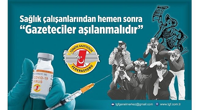 Türkiye Gazeteciler Federasyonu (TGF) Genel Başkanı Yılmaz Karaca: “Kamu yararına çalışan halkla, bürokrasiyle ve siyasilerle sürekli yüz yüze olmaları açısından meslektaşlarımıza sağlıklı bir ortamda görev yapmaları için sağlık çalışanlarından hemen sonra Covid-19 aşısının yapılması gereklidir.”