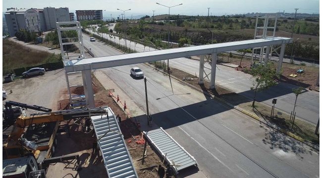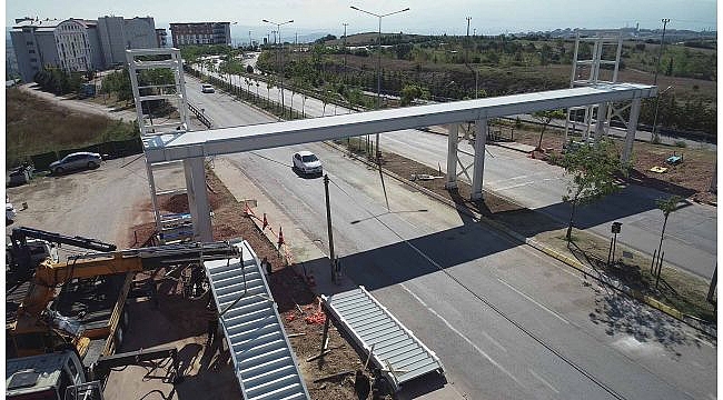 Kocaeli Üniversitesi yurtlar bölgesinde kalan öğrencilerin Prof. Dr. Baki Komsuoğlu Bulvarında bulunan duraklara erişimini güvenli ve kolay bir şekilde sağlayacak çelik yaya üst geçidi, 38 metre uzunlukta 3 metre genişlikte yapılacak.